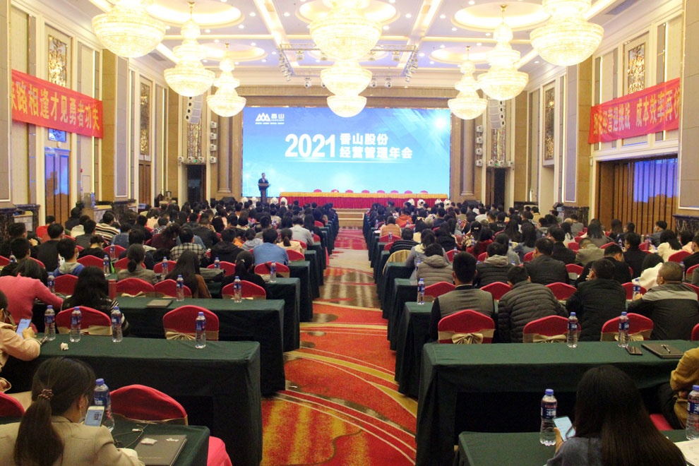 香山股份2021年經營管理年會在京華世紀酒店四樓宴會廳隆重召開。會議認真回顧總結了2020年工作,分析當前面臨的形勢,研究2021年主要工作思路,動員廣大干部員工持續深化轉型升級,增強管理能力,通過創新和業績承諾促進公司價值穩步提升。公司高層領導及主要管理人員305人參加了本次會議。會議由人力行政中心負責人周婧主持。